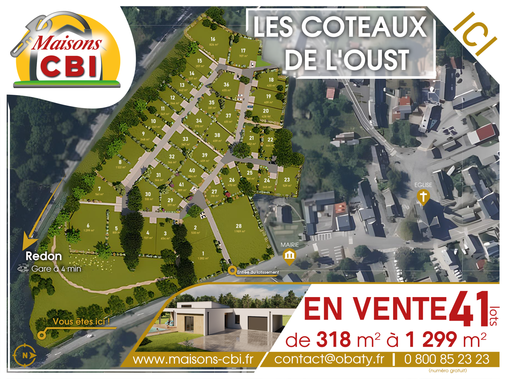 Maisons CBI commercialise 41 terrains à bâtir au cœur de Saint-Perreux, dans un environnement verdoyant. Idéalement situé, le lotissement se trouve à proximité immédiate de la mairie, du complexe sportif. Un emplacement privilégié pour profiter d’un cadre de vie paisible, tout en restant proche de Redon et de ses services.
